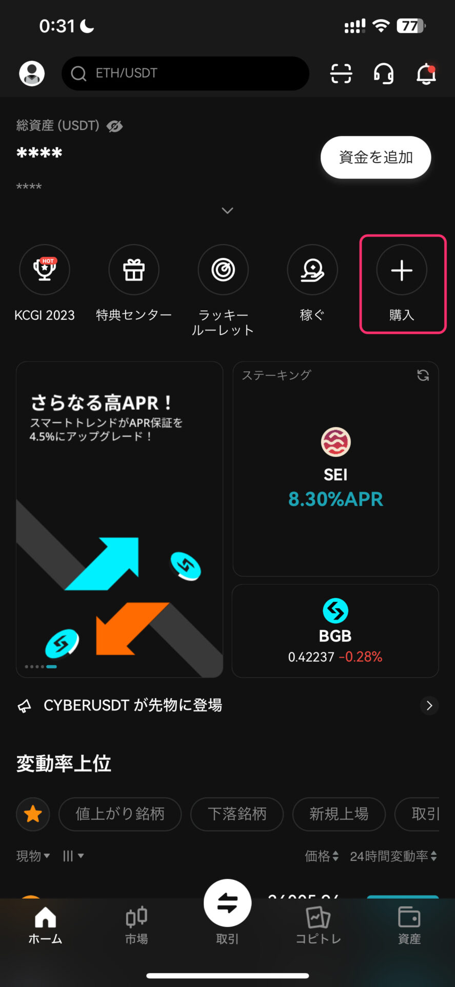 クレジットカード入金時の注意点などは、Bitget(ビットゲット)のクレジットカード入金方法を参考にしてください。